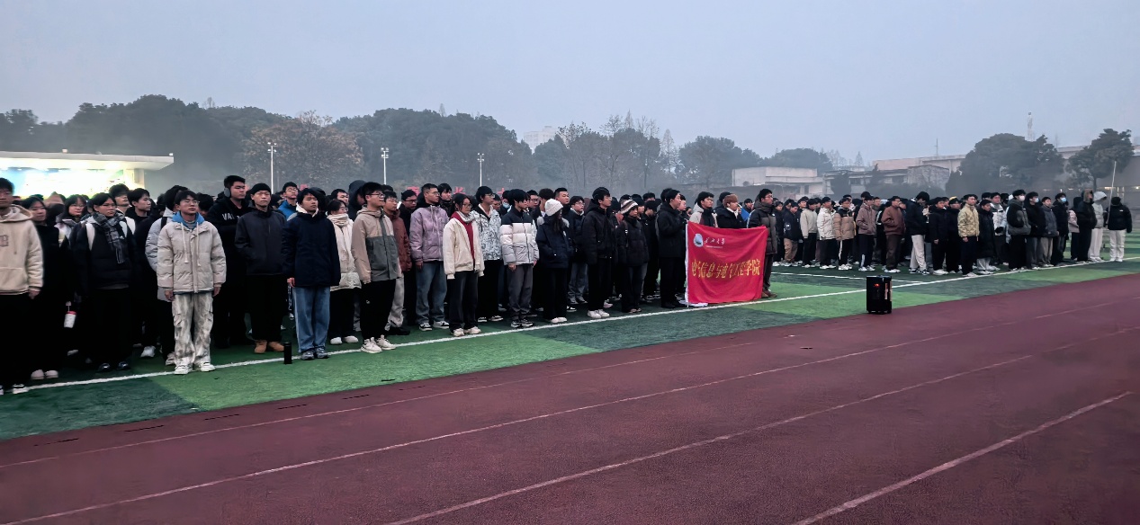 1月5日清晨,英国上市365官网在东校区北区操场庄重举行升旗仪式。学院党委副书记张晨露,辅导员李蒙、邓兴勇及全体大一学生参加活动。